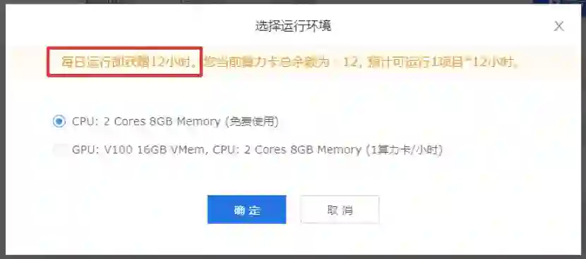需要注意的是,每天运行项目赠送的12小时算力有效期为48小时。请大家拿到就用,不要积攒哦。