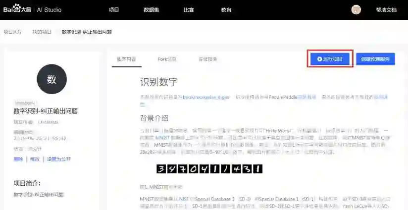 4、创建完成后, 进入项目预览页面, 点击该页面右侧的”运行项目”, 此时即可自动获得12小时算力。