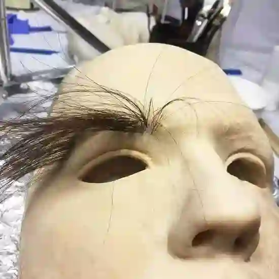 然后卡拉根花费17小时,用针头将数千根眉毛植入明胶和硅酮面罩。团队认为,眉毛对红外线对反射不同于皮肤。对于乙烯、石膏和塑料面具,卡拉根选择直接贴上事先成型的眉毛,然后略加修剪以与皮尔斯更为相似。