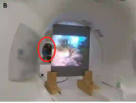 实验设计:首先使用 3T MRI 扫描参与者,同时让参与者观看投射到 MRI 孔后部屏幕上的汇编视频。对于狗来说,通过事先训练,将它们的头放在定制的下巴托中,以达到头部稳定的位置