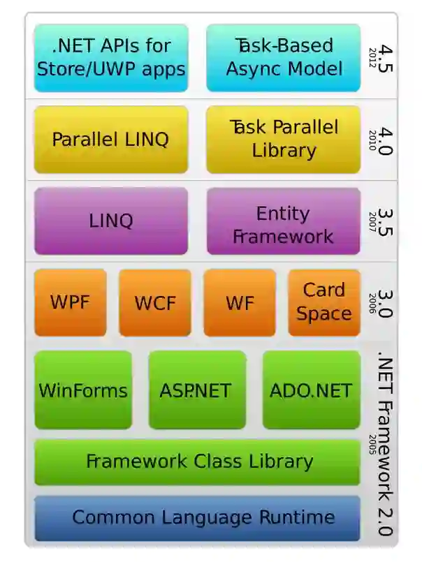 回首十年,是从.NET2.0一路走来,记得当年灵感之源发过一篇.NET技术堆栈大全,(http://www.cnblogs.com/unruledboy/p/NetStack.html),对照下自己,4.5的很少用到,其他技术或多或少都有涉及。