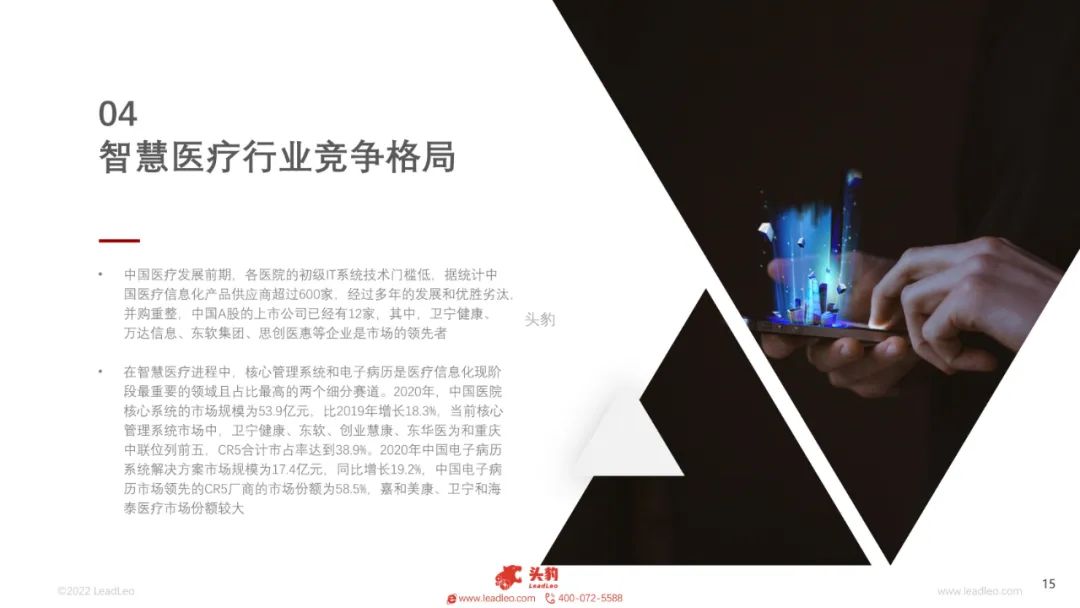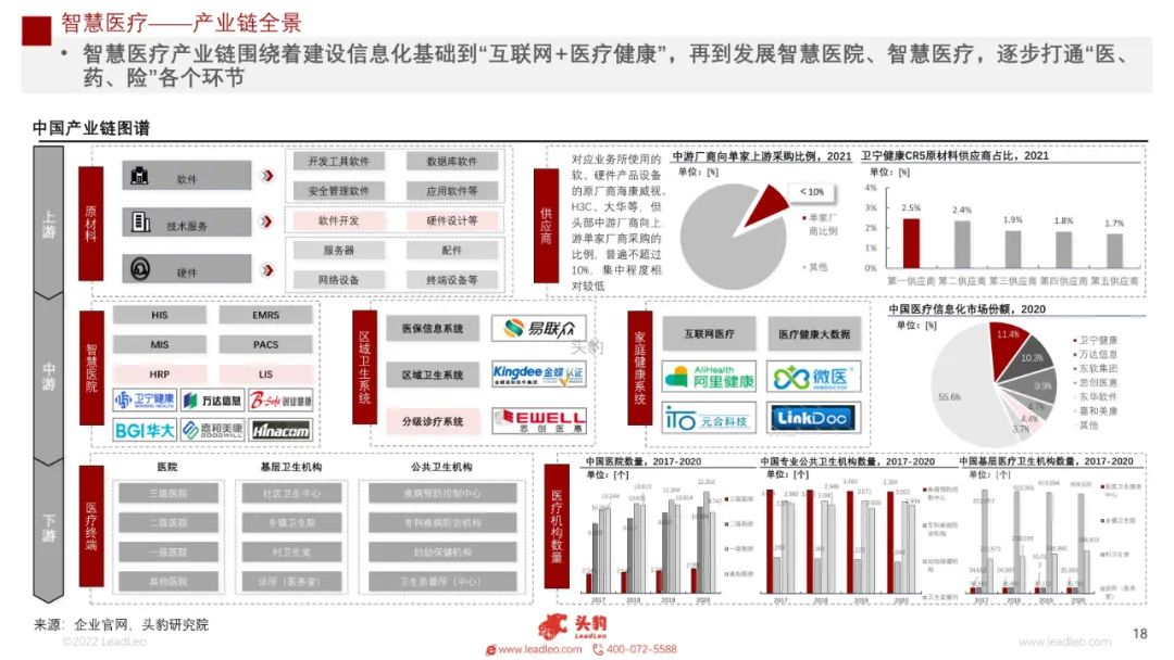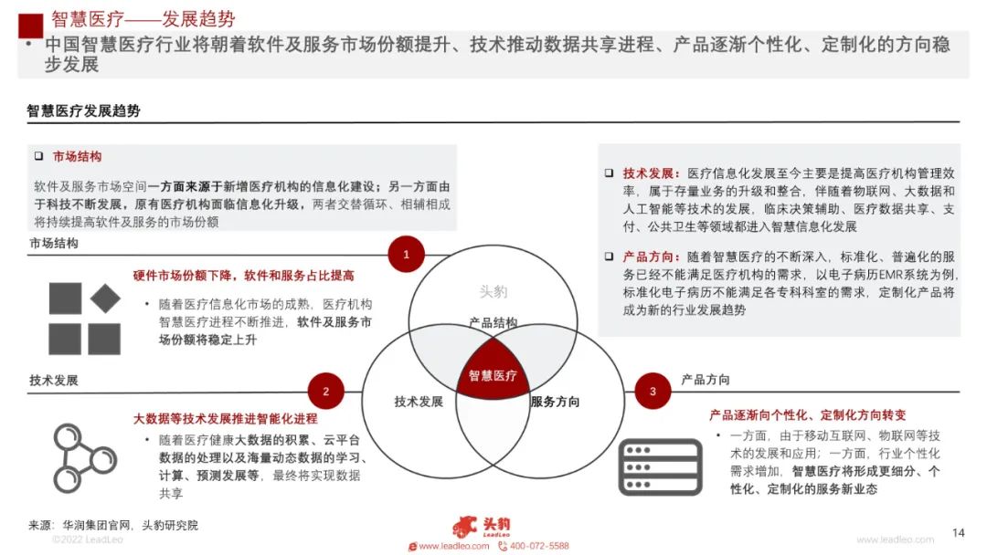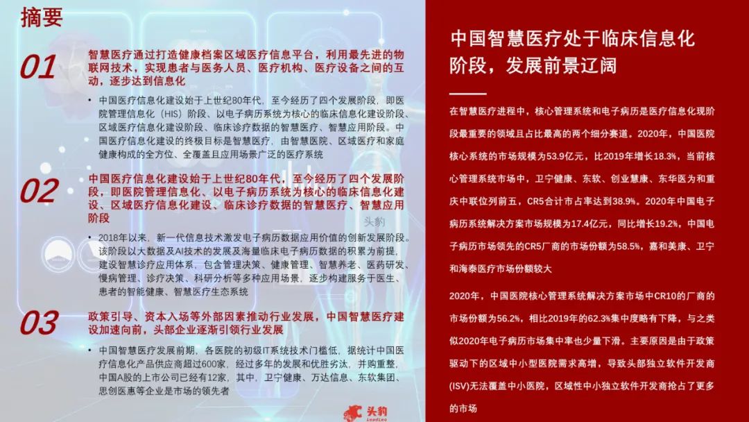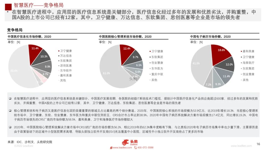 政策引导、资本入场等外部因素推动行业发展,中国智慧医疗建设加速向前,头部企业逐渐引领行业发展
