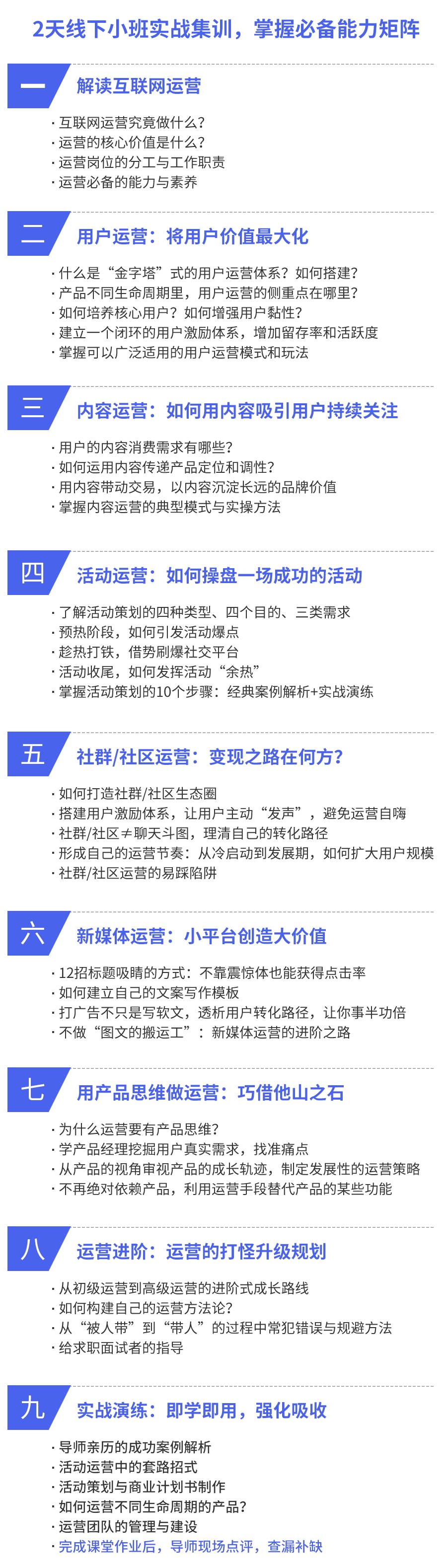 起点学院【互联网运营实战训练营】将从活动、内容、渠道、用户、新媒体运营等方向教你搭建完整的运营知识体系,提升你的综合运营实力,在工作中能够全面出击。