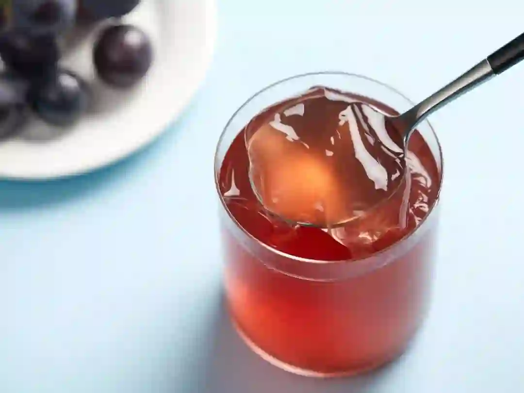 也可以把果冻倒在杯子里,加入冰块、气泡水等,做成清新冰爽的夏日饮品。