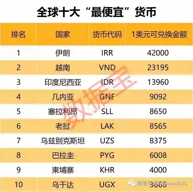 全球十大“最便宜”货币,猜下排名榜首的是哪个国家的货币?