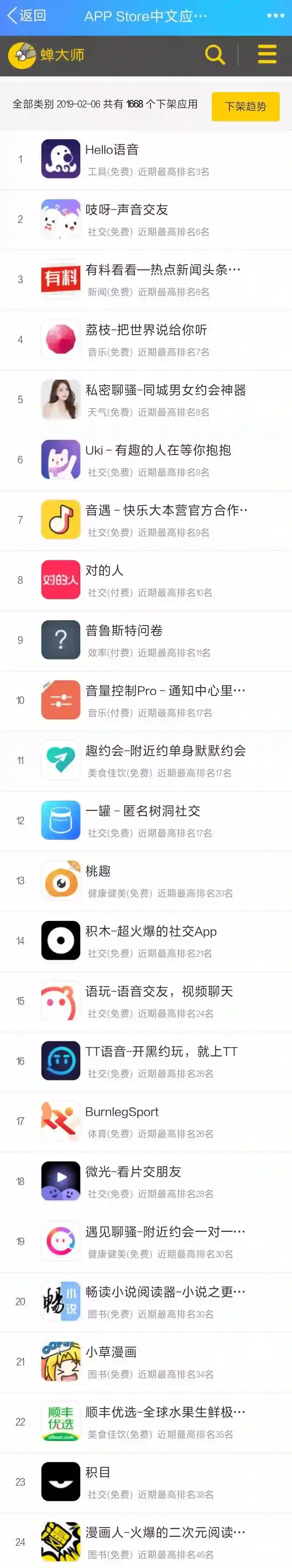 苹果应用商店下架一批中文APP,包含不少声音类社交产品