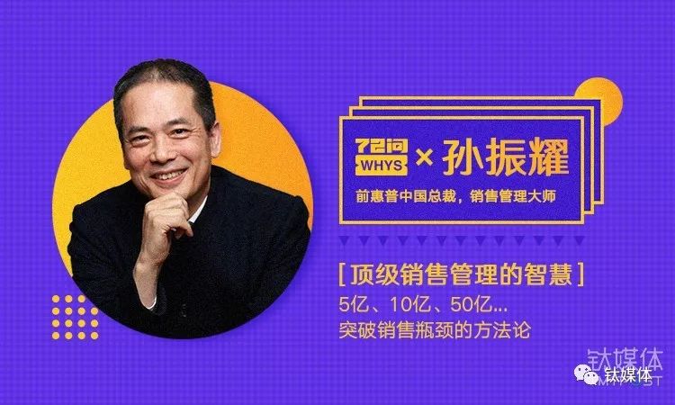 孙振耀在“钛媒体72问大学”的知识专栏《顶级销售管理的智慧》,每周一三五更新,七大主题模块、全年系统化课程,帮助你从细节到整体重新梳理管理销售的思路,仅需199元即可享受一整年的知识套餐~(完整内容请点击阅读原文订阅或下载最新版钛媒体APP体验更好哦)。