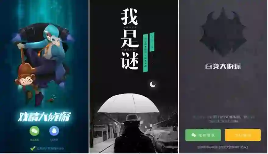 除了小程序,微信公众号也是很多剧本杀创业者尝试的第一步。随着时间的推移、平台得到验证,在小程序、公众号之外,开始有公司布局app,剧本杀、剧本杀官方、天天剧本杀、戏精大侦探、百变大侦探、我是谜、戏多多等app陆续上线,宣告线上剧本杀的战火开始燃起。