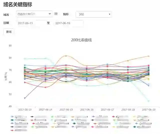 各域名的各种状态码的数量和比率、响应时间。