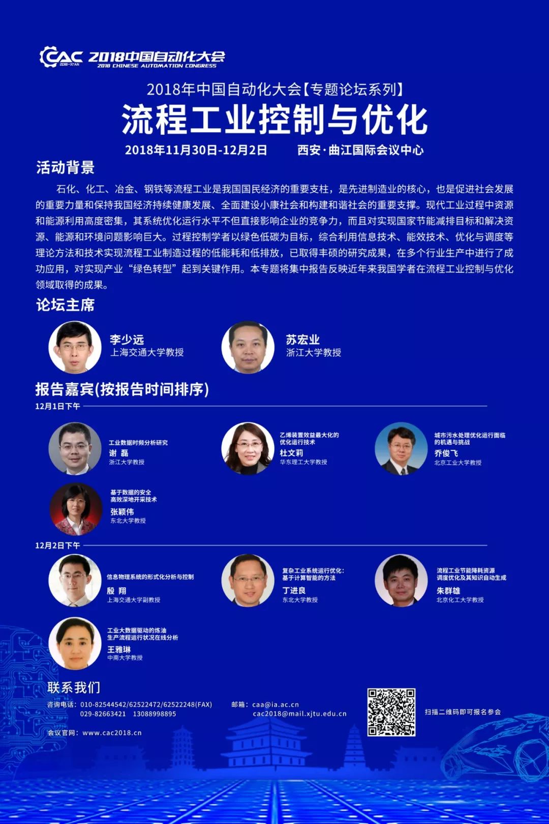 今天为大家介绍的是CAC 2018专题论坛:流程工业控制与优化的背景,及相应的两位论坛主席与八位报告专家。