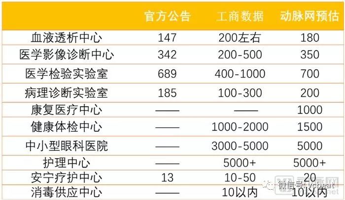 2017年8月,国家卫计委发布《关于深化“放管服”改革激发医疗领域投资活力的通知》,新增5类独立设置的医疗机构类别,包括:康复医疗中心,护理中心、消毒供应中心、中小型眼科医院、健康体检中心。