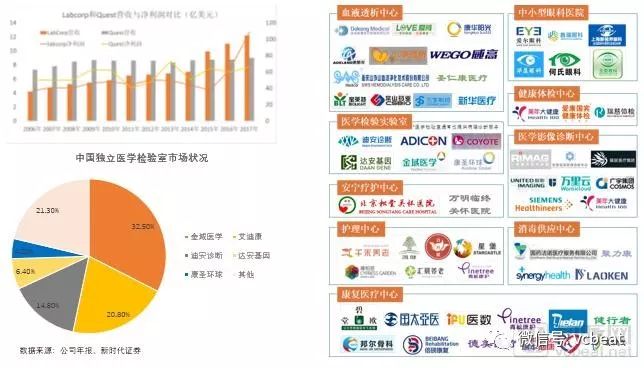 它们通过整合分散在不同区域的不同类型的医院和诊所的需求,从而批量提供低成本的辅助和支持性医疗服务,互惠互利。