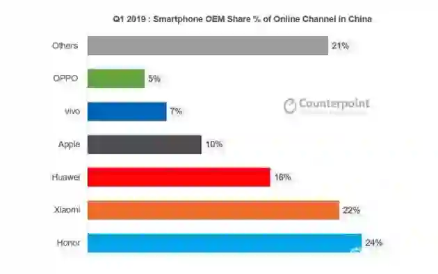 7 月 9 日是小米上市整整一周年,面对众多的压力以及产品线的调整,小米能做的,当然只能靠成绩说话,今年拆分出 Redmi 品牌后,其发布的 Redmi Note 7 系列在中国乃至全球都取得了不错的销量,近日 Counterpoint 公布的 2019 年第一季度中国智能手机市场在线销售份额报告显示,小米在线市场份额有所增长,占总份额 22%,但较华为还是有不小的差距。