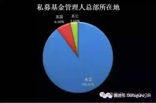 美国89.9%(按照净资产计算)的私募基金管理人的总部位于美国,其次为英国占到6.5%。