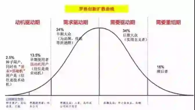 去年增长的量应该更多。对应罗格创新扩散曲线,目前知识付费应该还在需求驱动期,从五环外的视角看,知识付费依然大有可为。