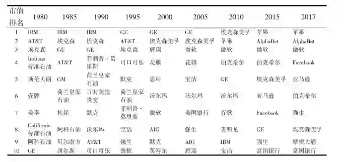 20 世纪80 年代,IBM 和AT&T 排在前列,它们分别是一家计算机公司和一家电信公司,后面基本都是石油公司。