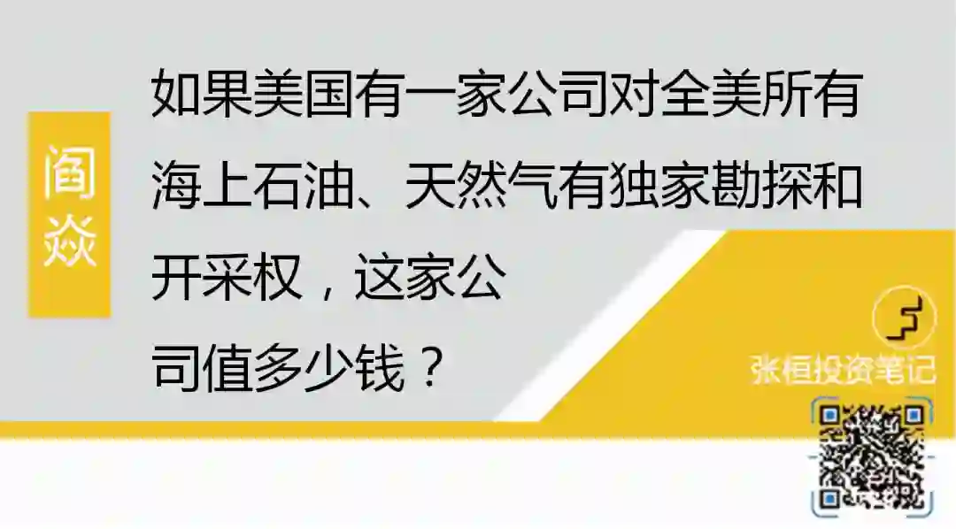 “Henry,我的一个项目刚被投委会否决了。但你想一想,如果美国有一家公司,对全美所有海上石油、天然气有独家勘探和开采权,这家公司值多少钱?”