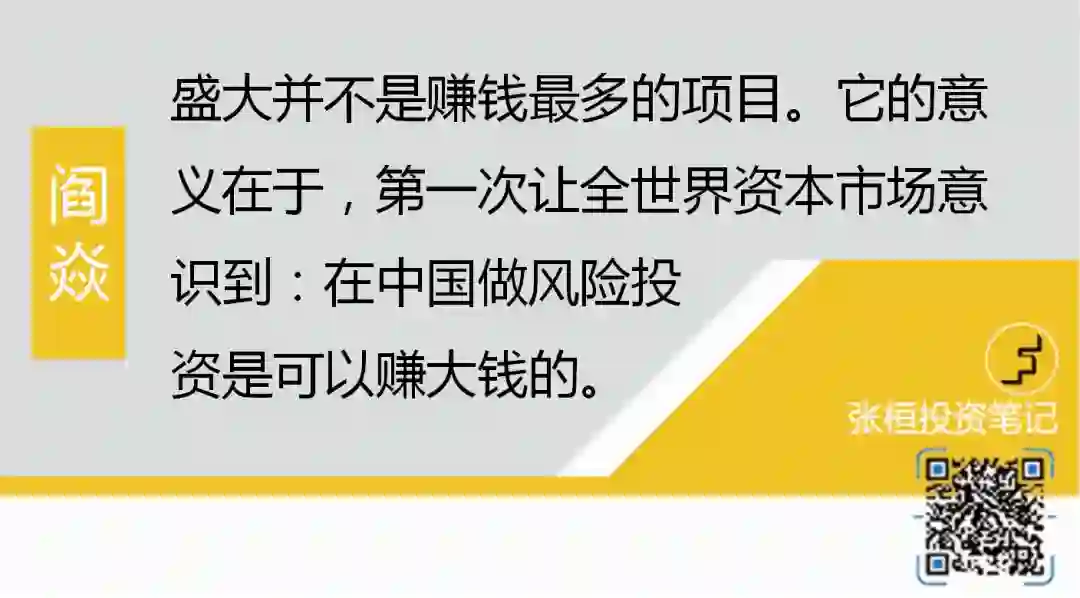 “盛大并不是赚钱最多的项目。它的意义在于,第一次让全世界资本市场意识到:在中国做风险投资是可以赚大钱的。”