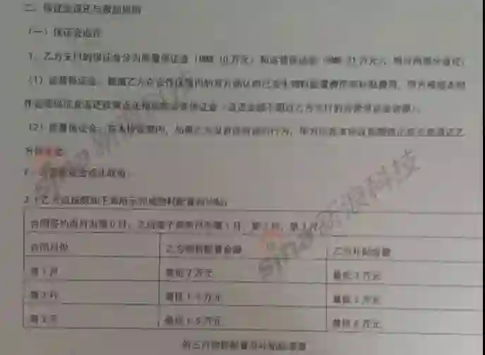 新文自己便是这批代理商中的一员,其合同条款中标明,代理商一共需要缴纳保证金31万元,其中10万为质量保证金,在结束合作时给予退还;另外21万为运营保证金,需要他在当年5月至7月在物料配置和补贴上投入21万,否则不予退还。