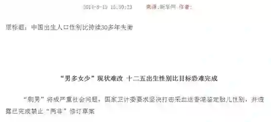 下图是《南方都市报》当时的报道《十二五出生性别比目标恐难完成》