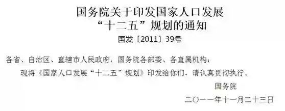2011年11月,国务院发布了《国家人口发展十二五规划》,,提出2015年的出生人口性别比目标为115. 而在这个规划提出的时候,2010年中国出生人口性别比为117.94. 这是中国首次把控制人口出生性别比纳入国家规划。