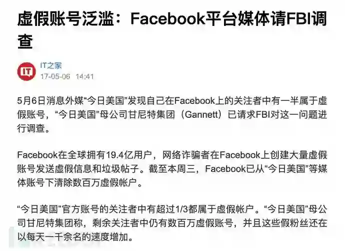 当然,从2012年到今天,其实我们也看到了Facebook在面对“虚假账号”、“虚假流量”之下在不断作出努力。甚至还想过请FBI调查...