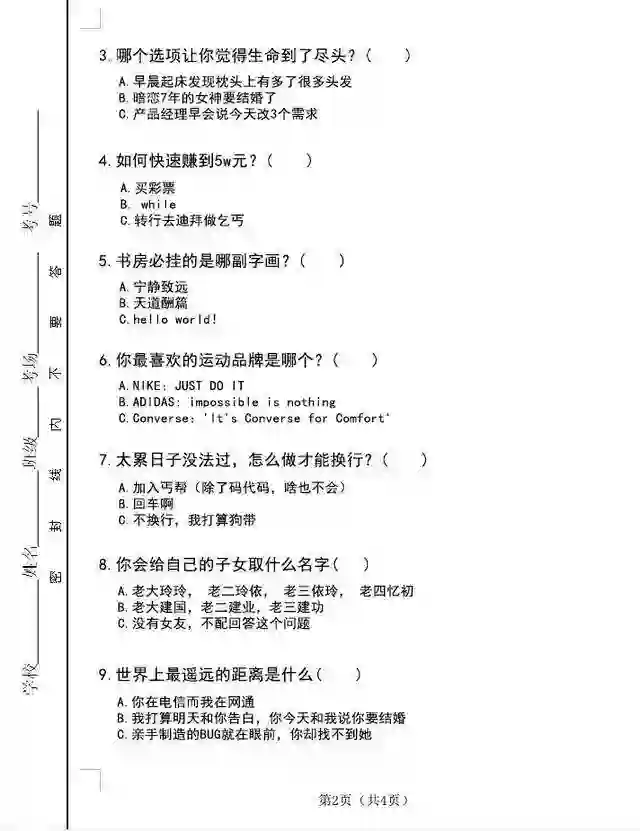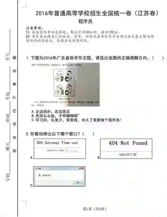 又是一年高考季,一起来做做“程序员们的高考试卷”,压压惊吧~