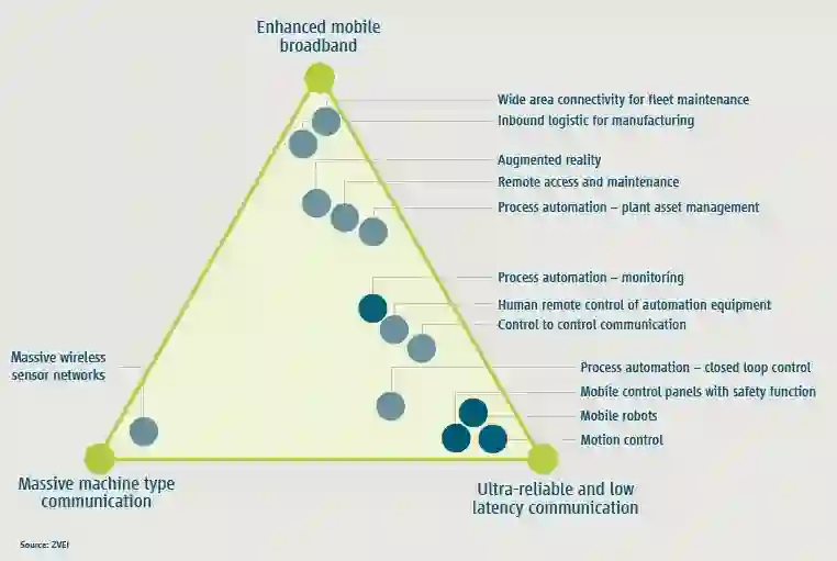 较之有线通讯系统来说,无线系统显然能快速突破技术和经济上的限制。未来会在工业生产中运用数量巨大的低成本传感器和执行器,除了使用有效的无线系统,别无它法。蓝牙和无线局域网都在开发低成本的结构,但至今为止仅有非常有限的机制来解决抗干扰、信息安全和响应时间等问题。单一的无线工业解决方案局限于很少的频带,由于只能容纳数量不多的传感器和执行器,不太可能有很好的经济效应。因此,可能仍然需要5至10年,5G才会在工业应用中起到巨大作用。