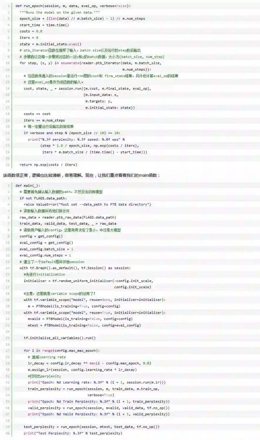 最后,我们来看一看main函数以及run_epoch函数。首先来看下run_epoch: