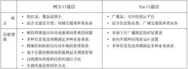 同时C-V2X根据接口的不同又可分为V2X-Direct和V2X-Cellular两种通信方式。V2X-Direct通过PC5接口,采用车联网专用频段,实现车车、车路、车人之间直接通信,时延较低,支持的移动速度较高,但需要有良好的资源配置及拥塞控制算法。V2X-Cellular则通过蜂窝网络U u接口转发,采用蜂窝网频段(如1.8GHz)。具体的PC5口和U u口对比如表所示。