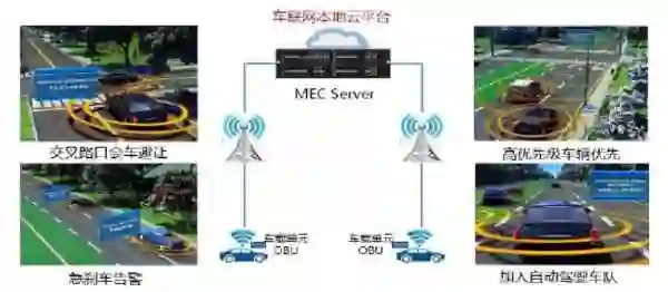 边缘云计算通过将本地云平台下沉在基站侧,可为移动终端提供低时延业务。通过LTE蜂窝网络和MEC车联网平台的本地计算,在紧急情况是下发警告等服务驾驶信息给车载OBU,相比现有网络时延,车到车时延可降低至20ms以内,大幅度减少车主反应时间。此外,通过MEC车联平台还可实现路径优化分析,行车与停车引导,安全辅助信息推送和区域交通服务指引等。