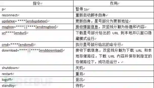 大东:脚本在完成上述操作之后,会利用一个死循环代码常驻系统内存,并与远端服务器通信实现远程控制。成功后,会先将本地的机器名、用户名、所在国家、系统版本、当前存在的安全软件等信发送出去。然后等待远端指令进行进一步操作。接受的其他指令。