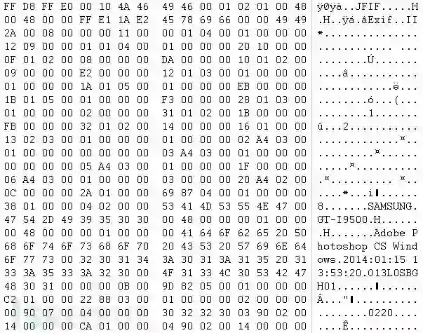 有趣的是,解开之后的变量是一个不明身份的小帅哥照片。从照片信息能看出,这张照片是用三星手机拍摄的,并经过 PS 处理,但没找到其他有用的信息,我们无法推断这人是谁……并且病毒执行后也没有调用这段数据,完全是一段垃圾数据。