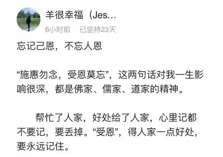 做人,不求你知恩图报,但也不要恩将仇报,不记得自己对别人的好,但不要忘记别人对你的好。