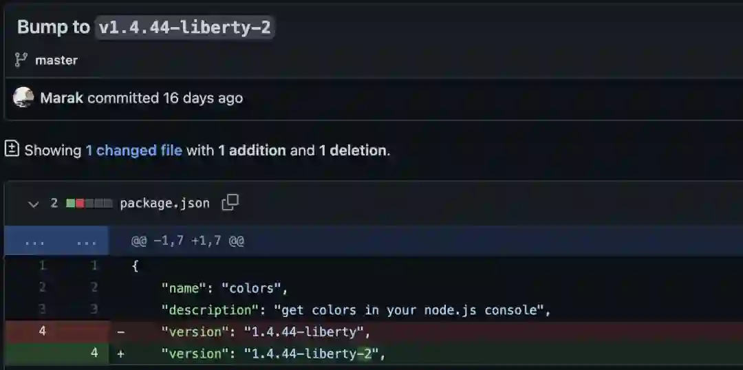 1月8日,Marak又在「colors」加入了v1.4.44-liberty-2。