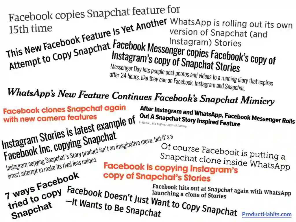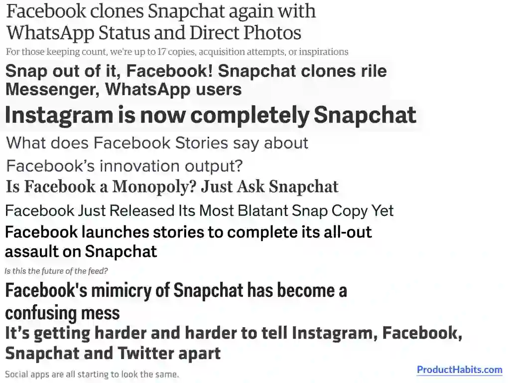 随着不断地克隆Snapchat的Stories功能,媒体开始在头条新闻中越来越多地批评这一策略。