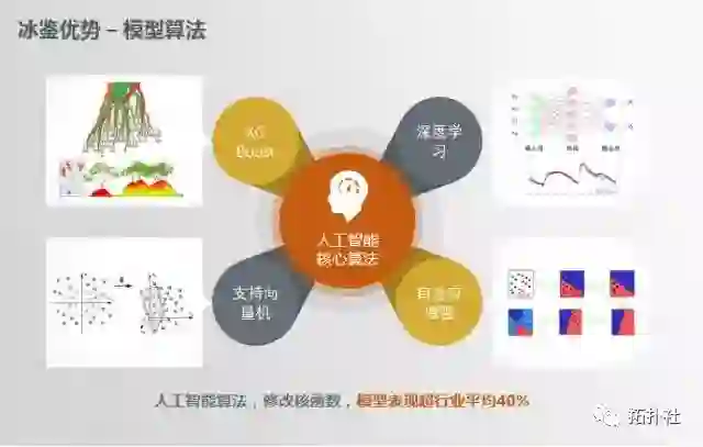 在建模中,冰鉴还使用传统线性模型和人工智能算法(比如机器学习、深度学习、XG Boost、SVM等等)相结合的方法,实现了自有的独特算法,模型表现超行业平均水平40%。