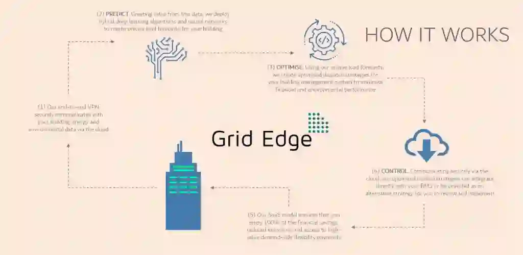 英国的一家名为Grid Edge的公司(提供基于云计算的电力管理软件服务)声称,他们利用人工智能技术对能源配置进行了预测和优化,实现了将控制权交还给了电力使用者。具体的方法是,Grid Edge操作一个VPN,通过它来连接和分析用户所在建筑的能源消耗数据,利用这些信息,Grid Edge与连接的电网进行通信,并制定相应的调度策略。这些策略的目的是节约能源,避免超载。