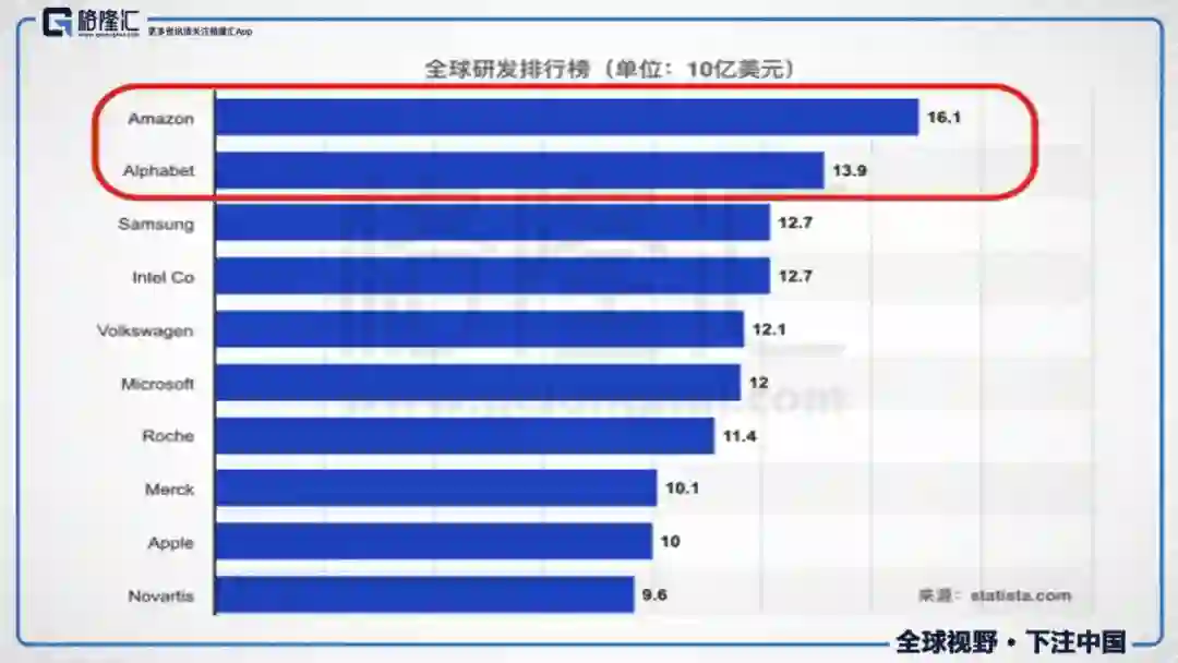 有人可能奇怪:垄断应该带来极高的利润率,但为什么谷歌和亚马逊利润率都很捉急。原因很简单——因为亚马逊和谷歌常年包揽全球研发狂人前二甲,挥金如土。世纪之交时亚马逊创造了一个估值新玩法——story telling。