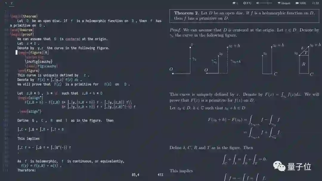 他用Vim编辑LaTeX的场景,就像下面这样: