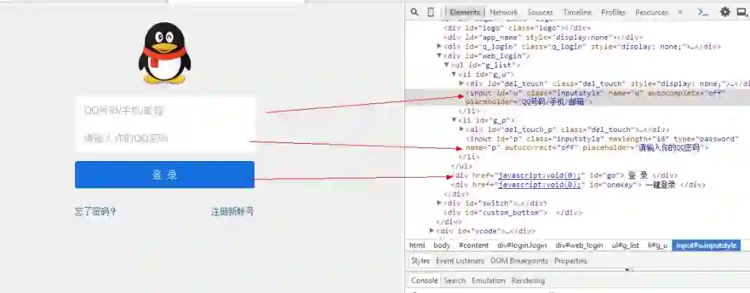 通过上图可以找出登录的元素位置,直接使用selenium进行登录操作。