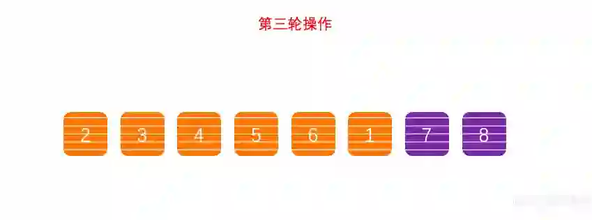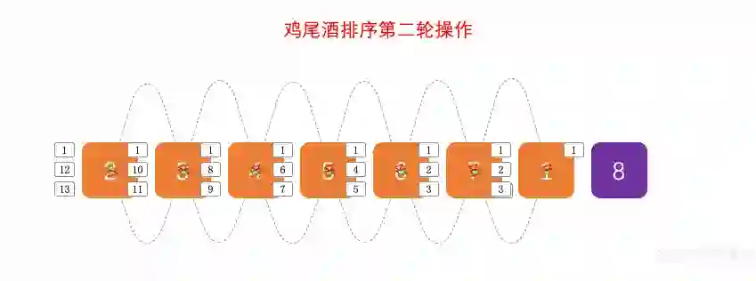 对比 冒泡排序 ,鸡尾酒排序只需要 3 轮操作就可以完成排序。