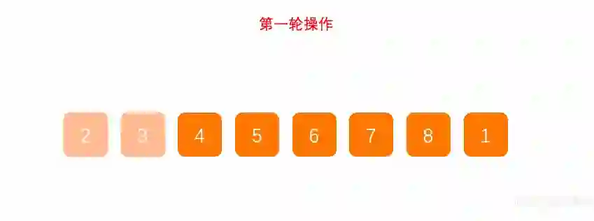 第一轮操作( 8 和 1 交换 )