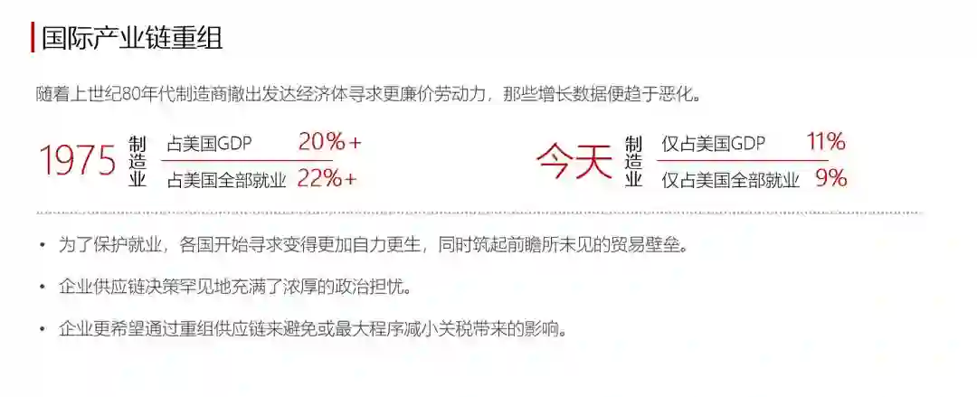 特朗普作为所谓民选总统,他的压力就是要保护就业,他想寻求美国优先,并且筑起贸易壁垒。因为华为事件,使得全球企业现有的供应链,罕见地充满了浓厚的政治担忧。