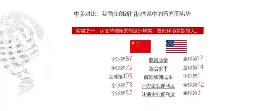 第一,从支持创新的制度环境看,营商环境差距比较大。