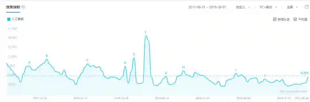 从百度的搜索指数(2017.9-2019.9)上可以看到,进入2019年4月,搜索指数低于平均值。AI 概念火热了几年之后,市场逐渐完成洗牌,一些没有核心竞争力的“伪人工智能公司”被踢出局,留在赛道上的是有“技术堡垒”的公司。