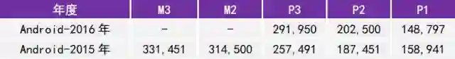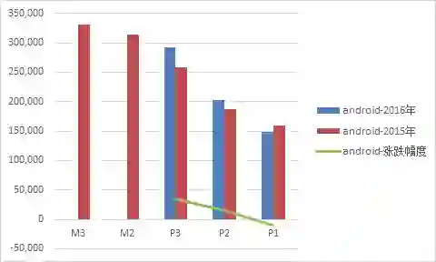2016年与2015年Android开发岗实际总现金薪酬50分位对比: