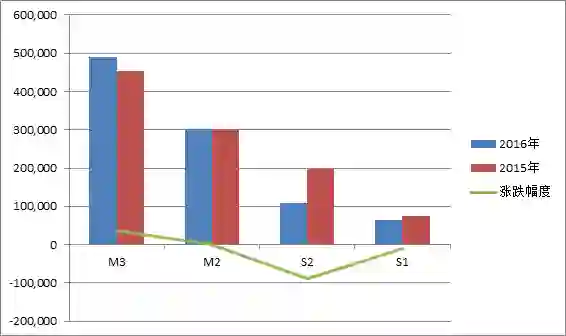 其中,商务营销管理类岗位年度总体薪酬与2015年基本持平,略有上浮;个人贡献类商务营销岗位年度总体薪酬则大幅跳水,S2 和S1分别下降 45 %和 14 %,这与从2014年下半年开始的大量创业企业经营规模收缩呈正相关。
