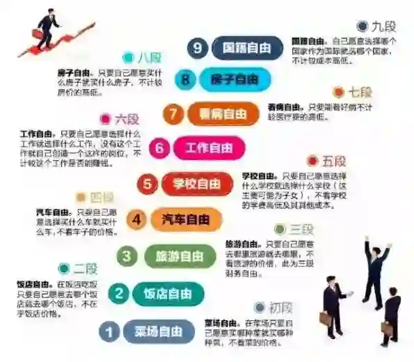 前段时间,微博上很流行一张关于财务自由的图,它将财务自由分为9个阶段: