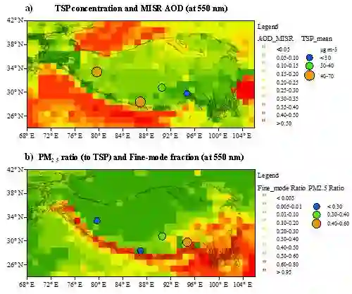 自2011年秋季始,依托野外观测台站,中国科学院青藏高原研究所和大气物理研究所、西北生态环境资源研究院(筹)合作,对青藏高原阿里、珠峰、纳木错和藏东南地区背景大气气溶胶开展长期连续监测。近期,该研究成果以Background aerosol over the Himalayas and Tibetan Plateau:Observed characteristics of aerosol mass loading 为题发表于大气科学期刊Atmospheric Chemistry and Physics。